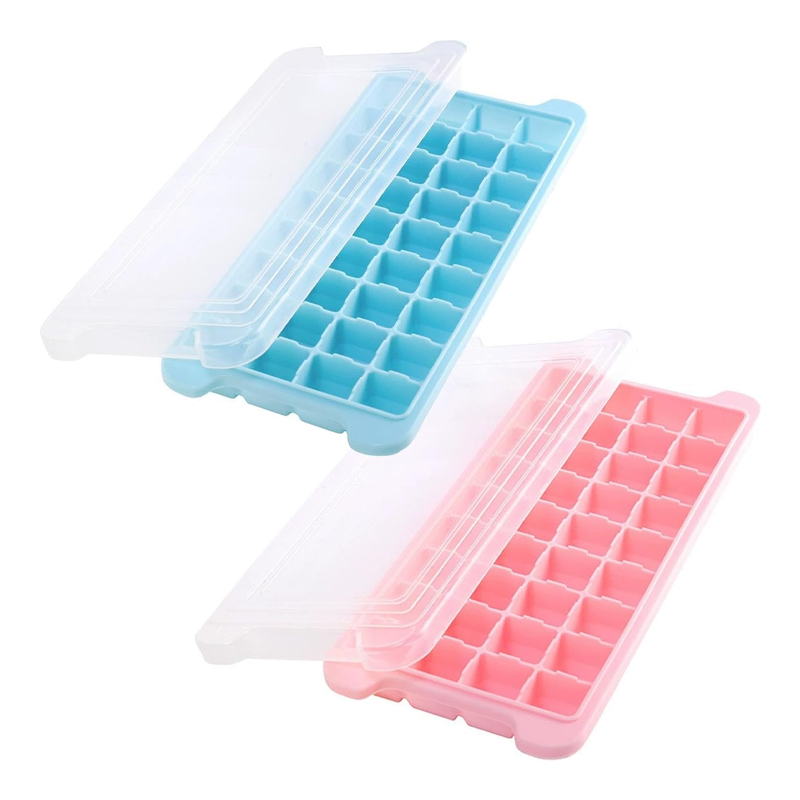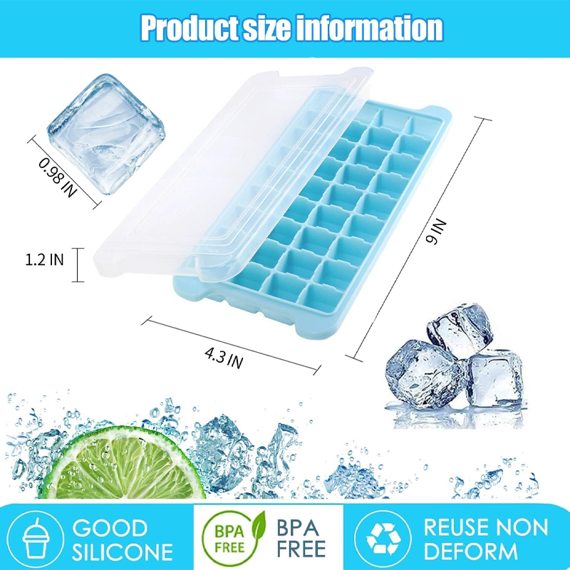Silicone Ice Cube Trays and Easy-Demolding Square Ice Maker, with Removable Lids, BPA-Free