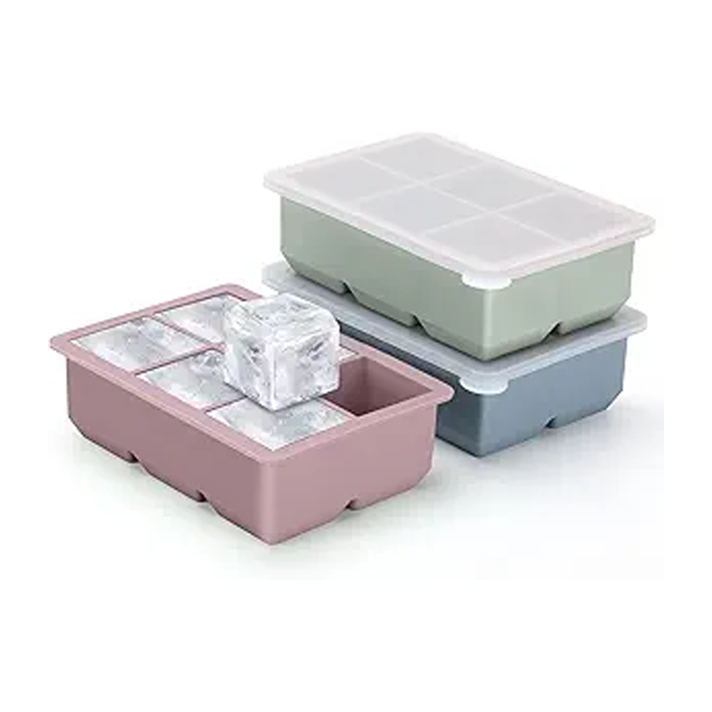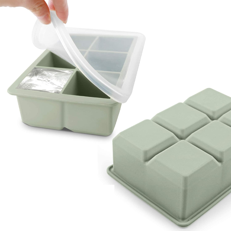 Silicone ice cube trays with leak-proof, removable lids, square, BPA-free, flexible and durable