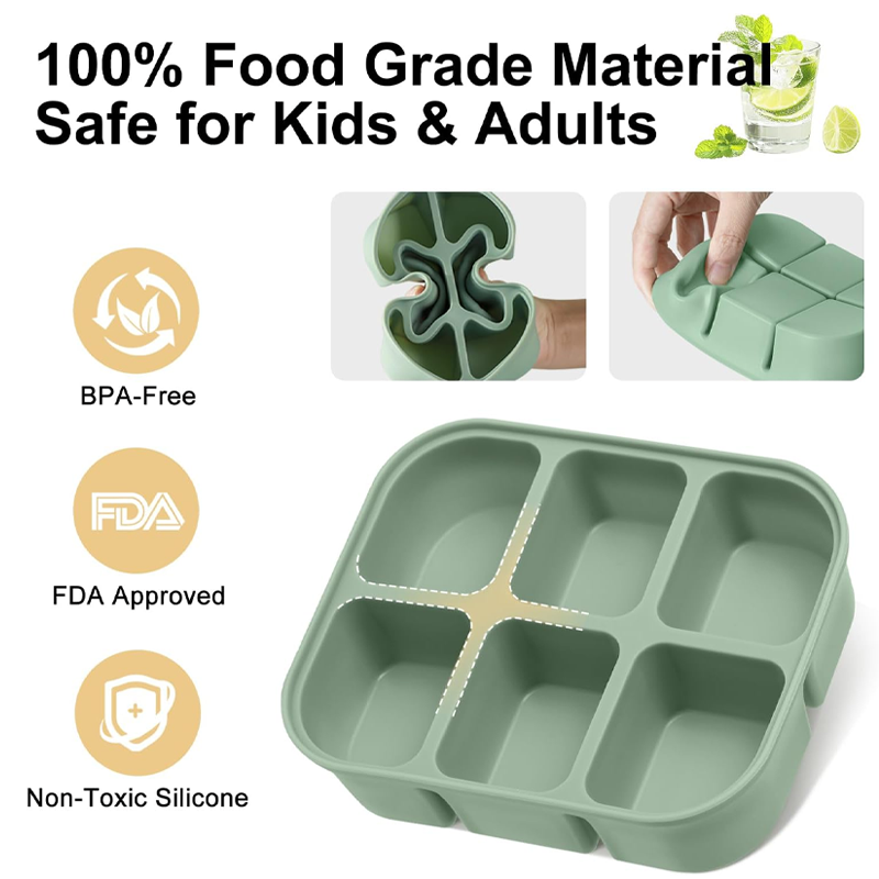 - – Lid-Sealed Ice Cube Trays – These ice cube trays are completely sealed, so you can make fresh baby food or ice cubes without worrying about refrigerator odors seeping into the silicone trays, thanks to their excellent seal. The containers fit tightly inside and out, preventing food from mixing.-Food-Grade Silicone – Our ice cube trays are made of BPA-free silicone, which is flexible and food-safe.